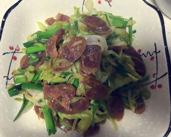 知识档案 青蒜苔炒腊肠的做法 准备食材:腊肠 青蒜苔 生抽 料酒 盐 1. 腊肠斜刀切片,青蒜苔蒜白切斜刀,蒜叶切段备用 2. 热锅凉油下腊肠和蒜白翻炒均匀加料酒继续翻炒 3. 腊肠变色加生抽和盐,下蒜叶继续翻炒 4. 蒜叶熟后关火出锅 温馨提示:口淡的人做这道菜的时候菜多肉少口味刚刚好 小知识:青蒜苔有预防流感、防止伤口感染、治疗感染性疾病和驱虫的效果 返回